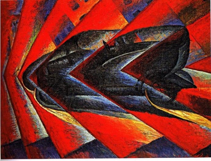 Футуризм считал, что модерность, возможно, состоит уже не столько в том, чтобы смотреть на часыили выбирать правильный меридиан, сколько в гонке скоростей между разными группами, расположенными во множестве уголков на планете. Неважно, откуда начинается отсчет времени или места для каждого (в конце концов, футуристы начинали с неоимпрессионизма или даже импрессионизма): важно было идти быстрее остальных и делать это убедительно.